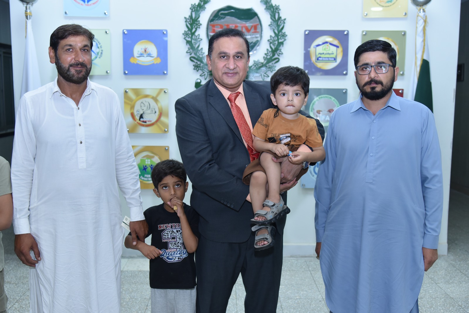 The Director General of Pakistan Baitulmal (PBM), Prof. Dr. Zeeshan Danish recently met with families and children who underwent cochlear implant surgery, facilitated by PBM’s financial support. The objective of these interactions was to evaluate the outcomes and monitor the progress of the treatment in collaboration with the Medical and Monitoring & Evaluation (M&E) departments of PBM. During these meetings, the guardians of the patients shared their experiences and expressed heartfelt gratitude to PBM and its higher management for enabling their children to receive this life-changing surgery. The parents were visibly satisfied with the support provided, highlighting the positive impact of PBM’s initiatives on their children’s lives.