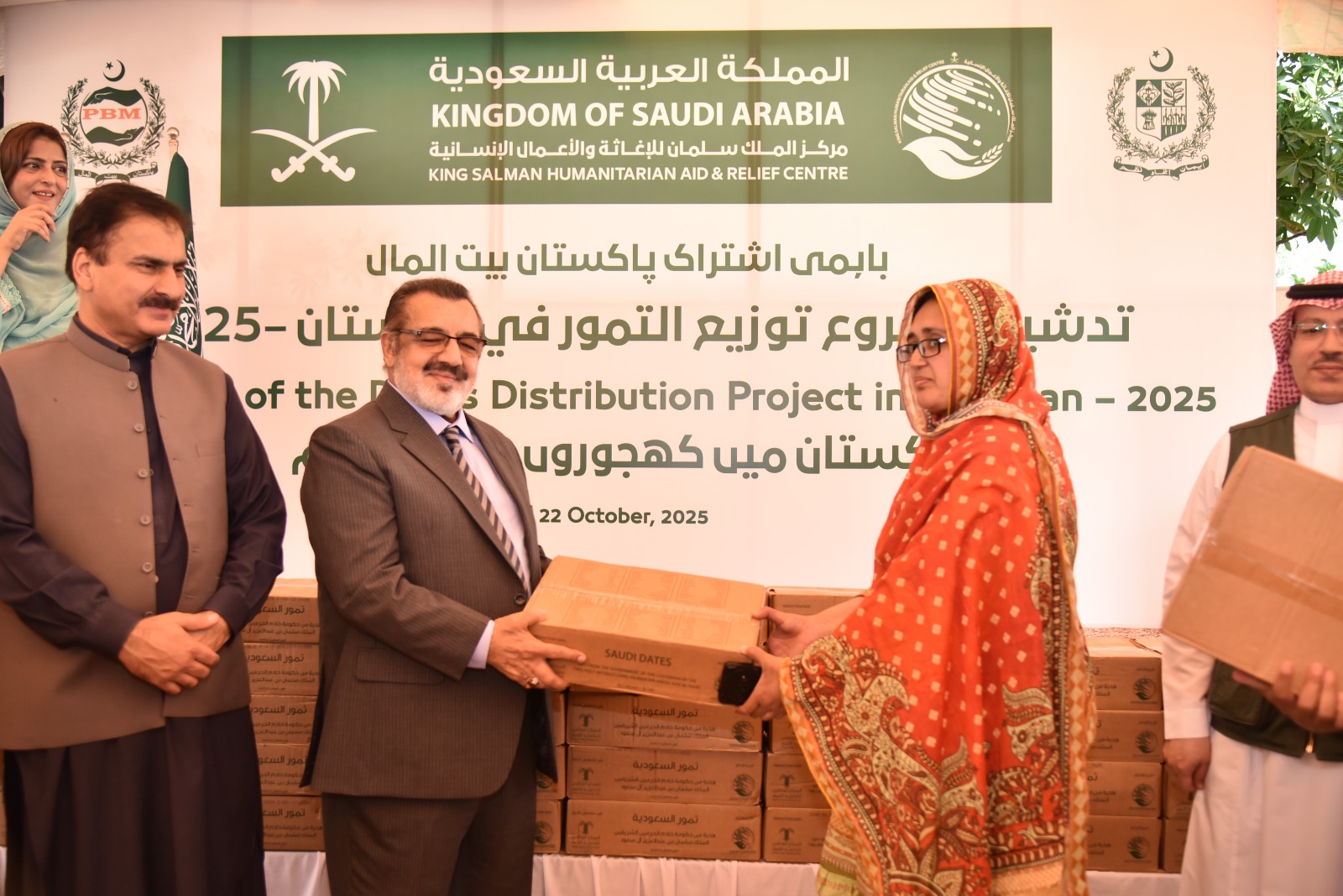 The King Salman Humanitarian Aid and Relief Centre has launched the Dates Distribution Project Pakistan 2025. Saudi Ambassador Nawaf Saeed Bin Al-Malkiy inaugurated the project in Islamabad today. Under this initiative, premium-quality Saudi dates will be distributed across all provinces and regions of Pakistan including Punjab, Sindh, Khyber Pakhtunkhwa, Balochistan, Gilgit-Baltistan, and Azad Kashmir in close collaboration with Pakistan Bait-ul-Mal.