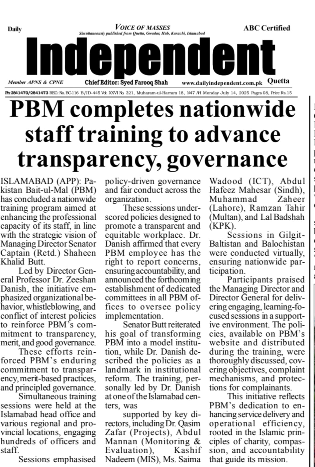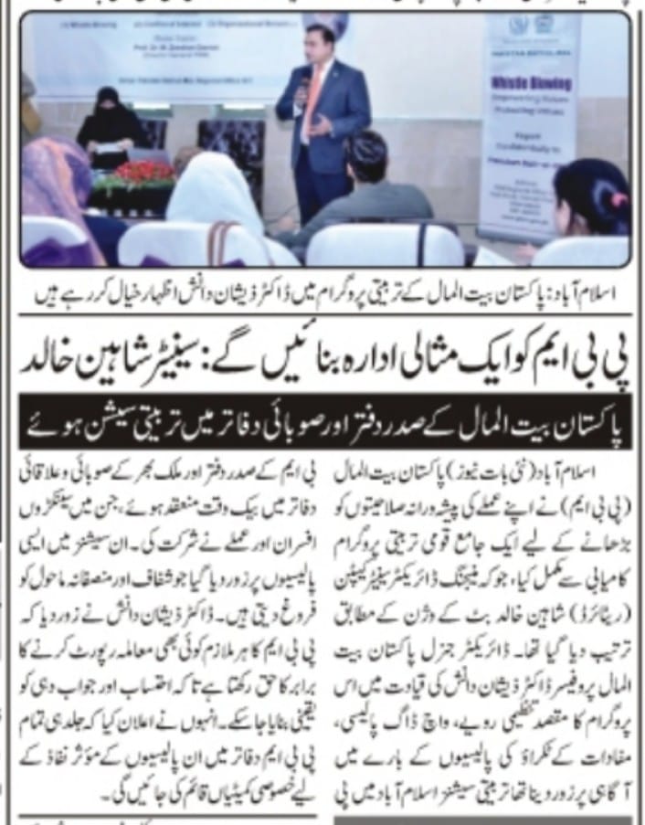 Pakistan Bait-ul-Mal (PBM) Conducts Nationwide Training Program to Strengthen the Capacity of the Workforce