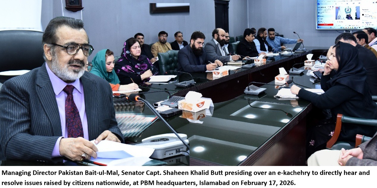 Pakistan Bait-ul-Mal (PBM), the countrys premier social protection agency, successfully conducted another comprehensive E-Kachehry under the leadership of its Managing Director, Senator Capt. Shaheen Khalid Butt, to directly address concerns raised by citizens from across Pakistan.
